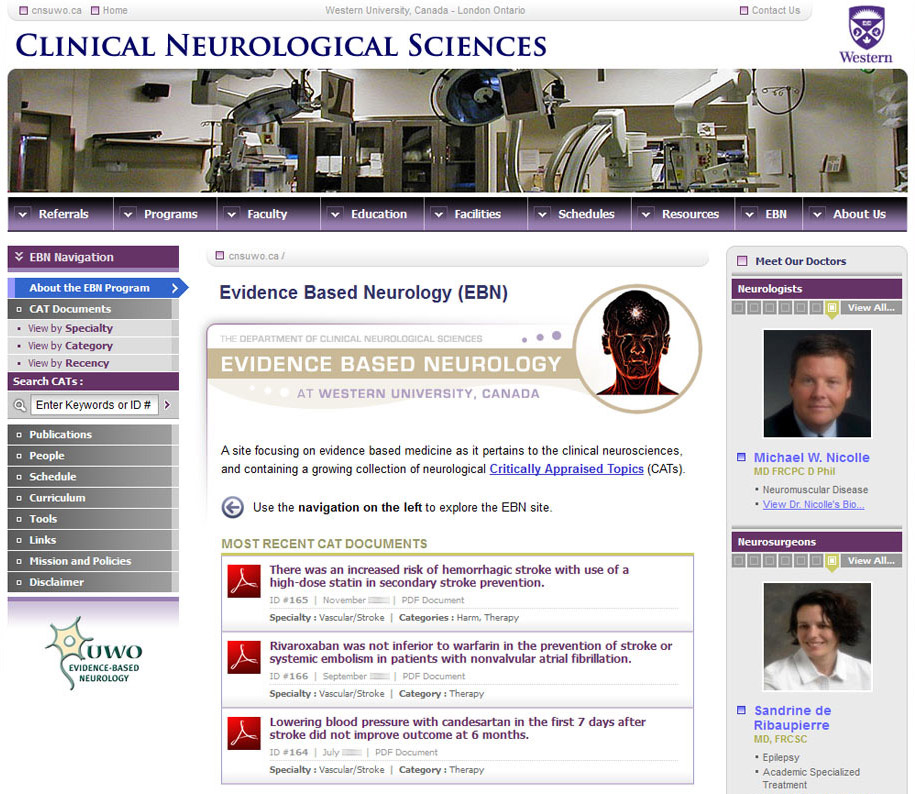 My extensive and rewarding collaboration with this department started in 2005. The Department of Clinical Neurological Sciences at Western University in London, Ontario, is one of the few organizations in Canada that hires both physicians and surgeons. This creates a higher level of collaboration, and a competitive advantage in the treatment of complex neurological disorders.