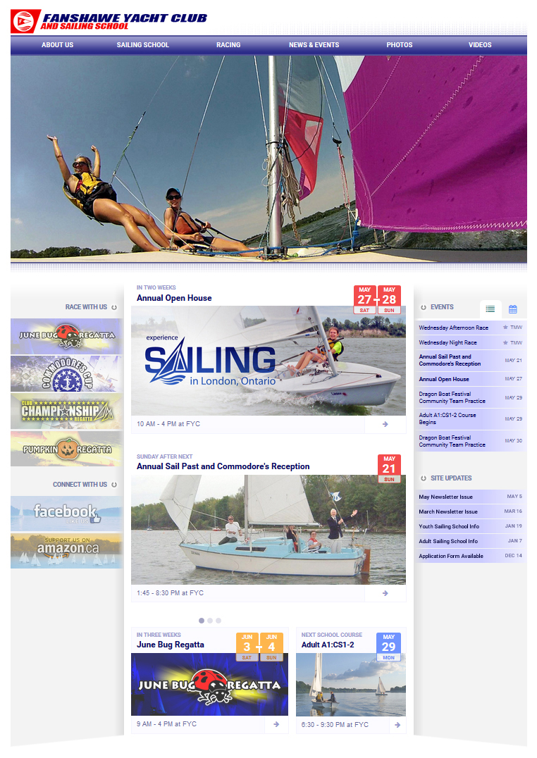 A re-imagined and modernized platform enables London's sailing club to engage with its members and the public through their new website and social media presence. This powerful, event-focused site automatically integrates with the club's Facebook page to maintain a dynamic listing of upcoming events, without requiring manual input from a volunteer. As part of an ongoing community project of mine, this site continues to receive upgrades and improvements to ensure it is one of the best sailing club websites in Ontario.
