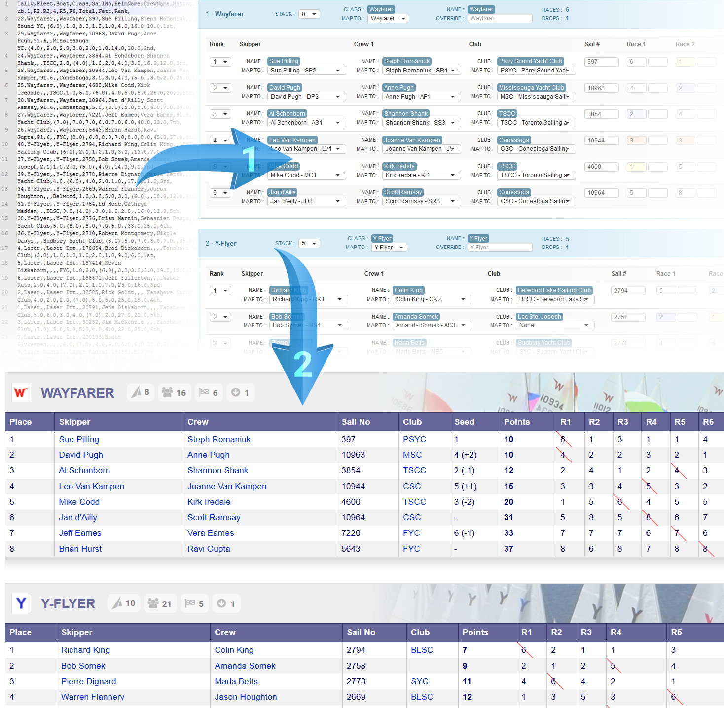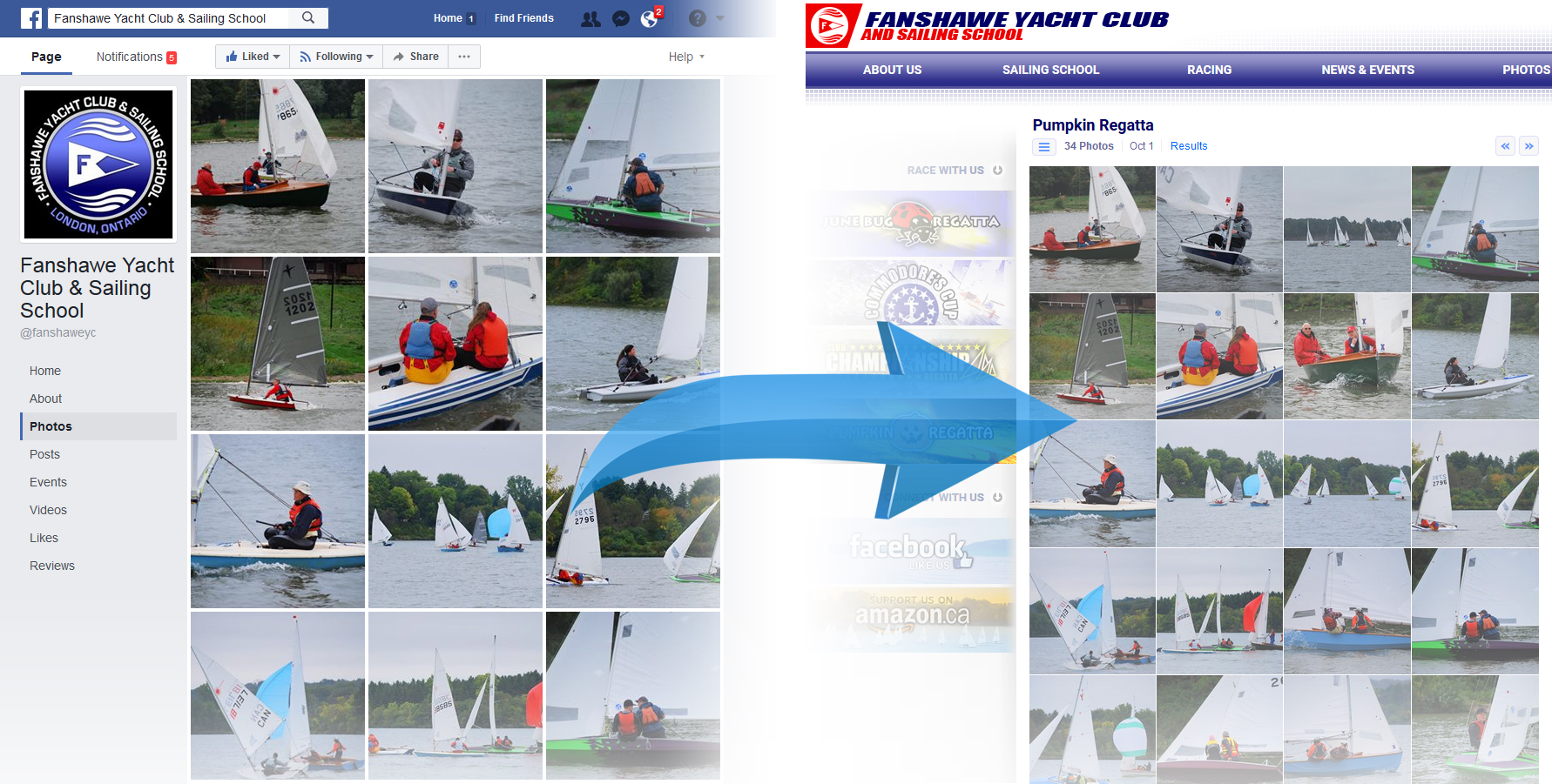 Results from sailing regattas are published at blistering speeds on the website, expanding an archive of results that surpasses that of any other Canadian sailing club. Links to personalized profiles are automatically established, highlighting the past results and photo tags of each sailor. Combined with an automated importing process, this mapping and sailor linking in the results is completed instantaneously with no additional user input.